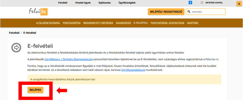 1. Első lépésként a 2026. évi általános felsőoktatási felvételi eljárásnak megfelelő, erre a célra kialakított elektronikus felületen – felvi.hu (e-felvételi rendszer) – nyújtasz be jelentkezést.