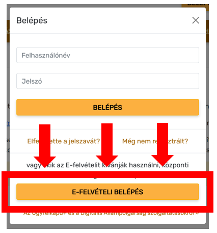 Az általános felvételi eljárásban jelentkezést benyújtani kizárólag online www.felvi.hu oldalról elérhető  tudsz. FIGYELEM! A jelentkezők Ügyfélkapu+ / Digitális Állampolgárság azonosítást követően léphetnek be az E-felvételibe, nem szükséges ehhez regisztrálniuk a Felvi.hu-n.